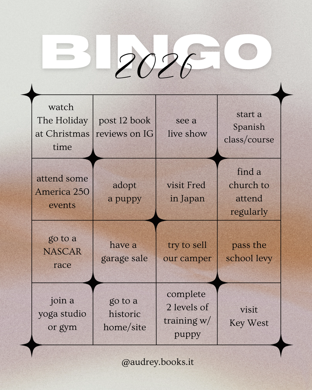 I was scrolling social media the other day & saw that a friend of mine made a 2026 BINGO card. I love making lists and crossing things off, so I decided to make one, too!